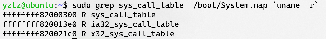 1 $ sudo grep sys_call_table /boot/System.map-`uname -r`